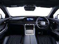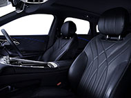 The spacious interior is appointed with premium black leather upholstery and refined material finishes, creating an elegant and contemporary space for both driver and passengers.