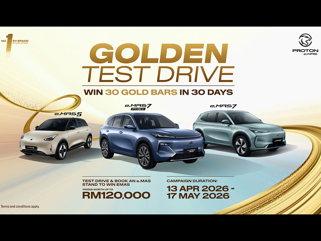 With one in every two EVs sold in Malaysia in 2026 being a Proton e.MAS, the brand continues to strengthen its leadership through accessible, practical, and Malaysian‑first electrified solutions. The Golden Test Drive campaign builds on this momentum by encouraging more Malaysians to step into an EV or PHEV, experience it for themselves, and make the switch with confidence.