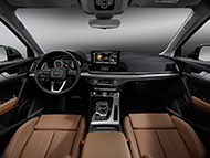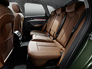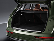The long 2.82-metre wheelbase of the updated Q5 facilitates spacious interior proportions and ample luggage space accessible through the powered tailgate which is another range-wide standard feature. With all five seats in place luggage space measures up to 550 litres, or 1,550 litres with the rear bench folded – these figures are based on the Vorsprung version with its standard sliding rear bench seat plus, which has a 40:20:40 configuration and offers a movable seat base and adjustable backrest angle in the interest of both passenger comfort and maximum load accommodation.