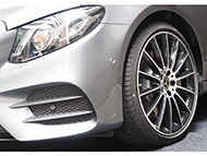 The E 300 AMG Line is equipped with enhanced MULTIBEAM LED headlamps, which open up new dimensions in headlamp technology. Each headlamp is equipped with 84 individually activated high- performance LEDs that makes it exceptionally bright and precise, and automatically illuminate the road surface with a previously unsurpassed, precision-controlled distribution of light – without dazzling other road users. The E 300 AMG Line comes with 20-inch Multi-spoke AMG alloy wheels.